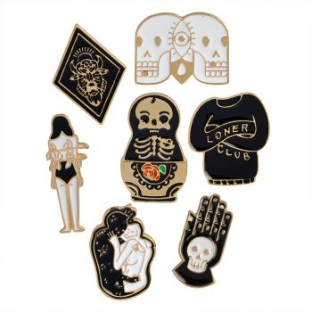 Metal Enamel Broken Heart and Wine Bottle, 2pcs/set